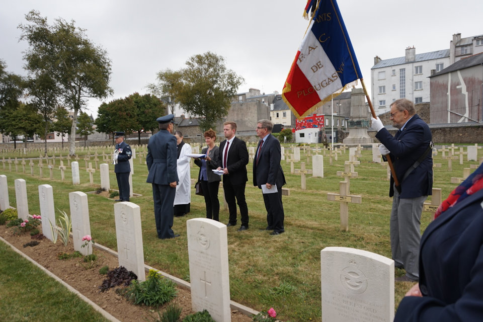 The grave of 26 year old Flying Officer (FO) David Stein who served in the Royal Air Force (RAF) volunteer reserve, has been rededicated in France at a cemetery where he lay as an ‘unknown’ for many years. The moving service took place on Wednesday 19 September at the Commonwealth War Graves Commission (CWGC) Brest (Kerfautras) Cemetery, Brittany in France.