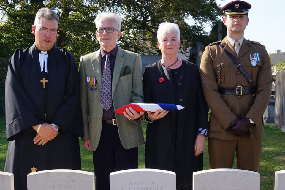 The resting places of Lieutenant (Lt) John Gillis Butt MB and Lance Corporal (LCpl) Leonard Thomas Courtney, were honoured yesterday (Tuesday 9 October) during separate rededication services at the Commonwealth War Graves Commission (CWGC) Hooge Crater Cemetery and Stasegem Communal Cemetery, both in Belgium.