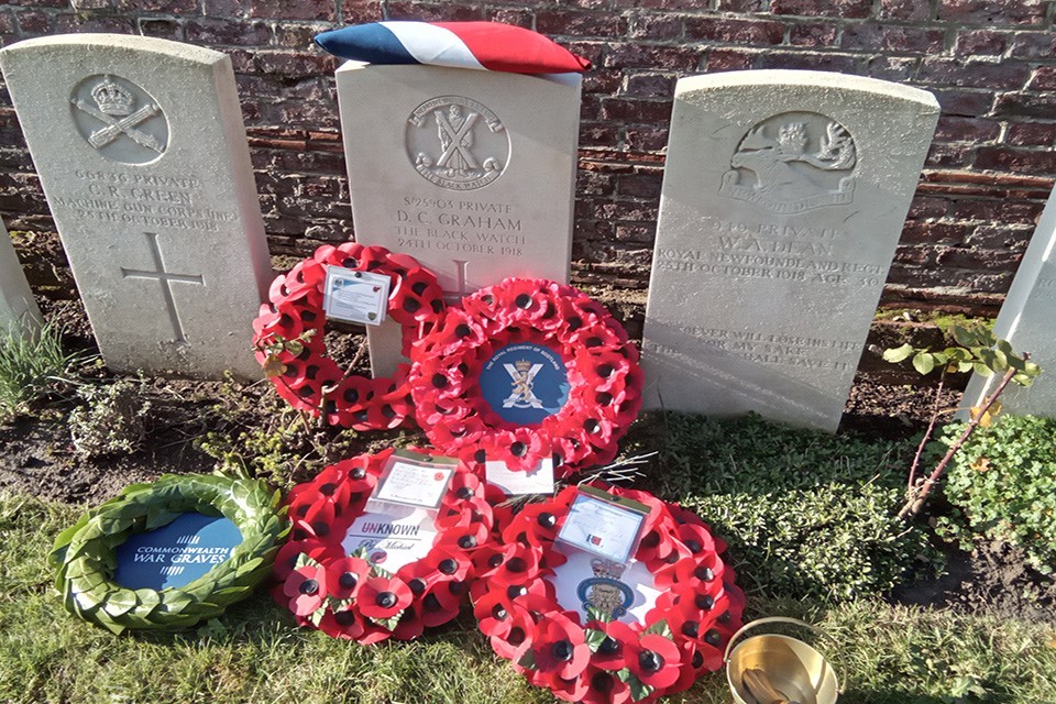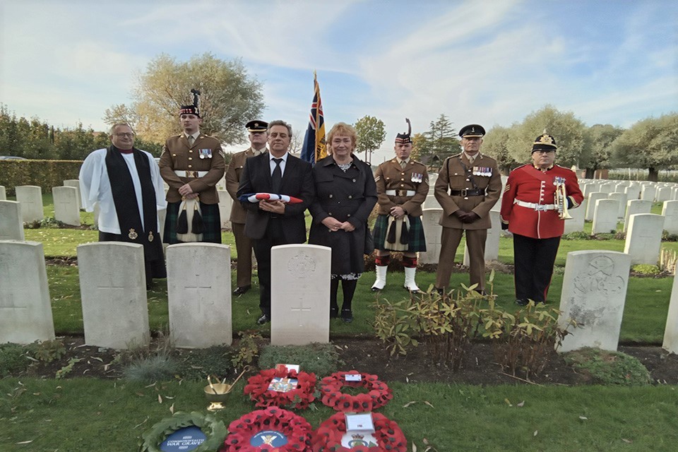 The services were organised by the MOD’s Joint Casualty and Compassionate Centre (JCCC), also known as the ‘MOD War Detectives’, and were held at various Commonwealth War Graves Commission (CWGC) cemeteries. The services were conducted by The Reverend Andy Nicolls, CF and attended by representatives from the current day equivalents of these casualties’ regiments (Royal Fusiliers, the Mercian Regiment, Royal Logistics Corps and the Royal Regiment of Scotland).
