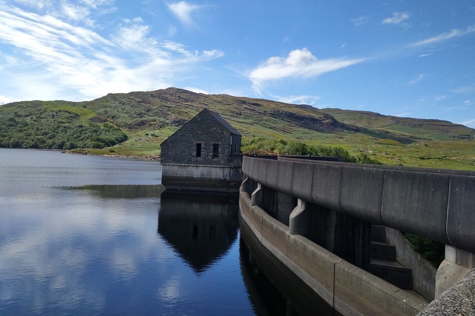 Rainwater is collected from across the Snowdonia National Park through a network of rivers, leats and streams that feed into Trawsfynydd Lake. The water surges down 2 high pressure pipelines, at more than 4,000 gallons per second, to drive 2 turbines generating electricity. Just one inch of rainfall creates 24 hours of electricity generation.
