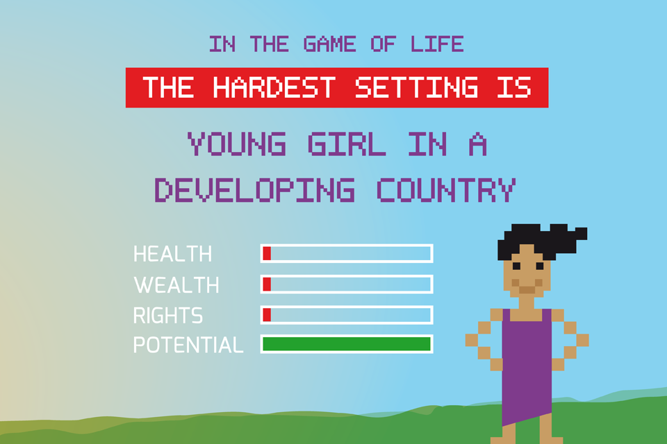 The hardest setting in the game of life? Young girl in a developing country: your health, wealth and rights are rock-bottom. But your potential is sky-high! Inforgraphic: DFID