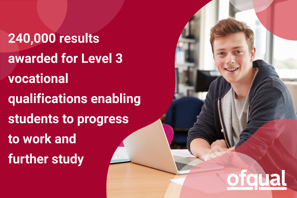 240,000 results awarded for Level 3 vocational qualifications enabling students to progress to work and further study