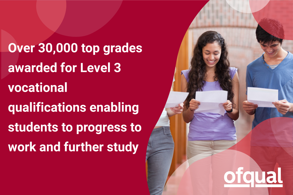 Over 30,000 top grades awarded for Level 3 vocational qualifications enabling students to progress to work and further study