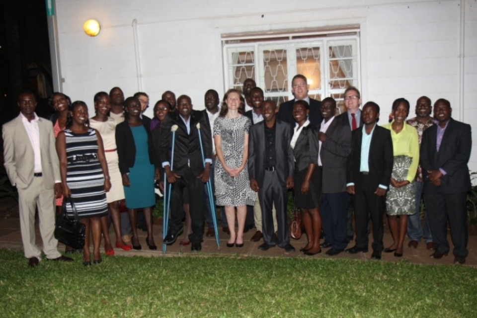 Officials from the UK mission in Uganda with recipients of 2014/15 UK scholarships