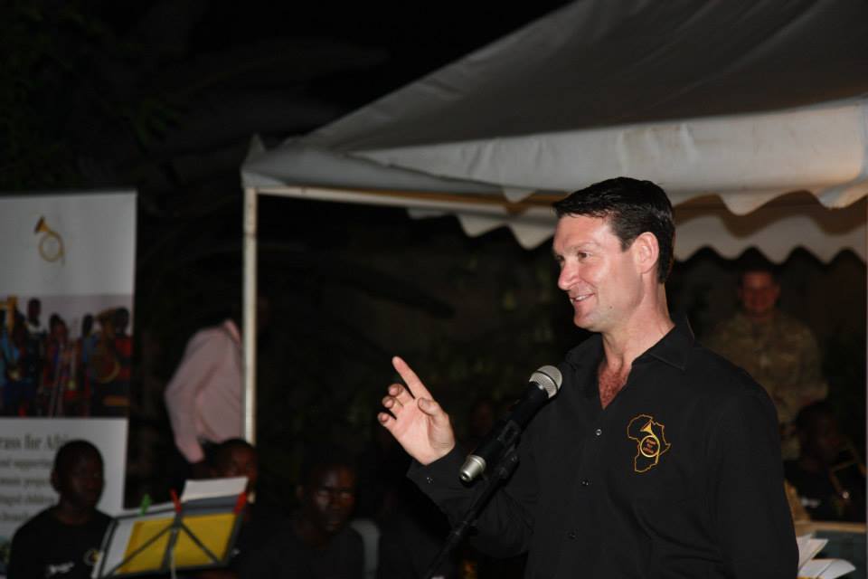 Jim Trott, a British Airways pilot who founded Brass For Africa to help improve the lives of disadvantaged children, which works with MLISADA and other Ugandan organisations, thanked the High Commissioner for hosting the event. Mr Trott also contributed his musical skills on the trumpet, and conducted several pieces during the evening.