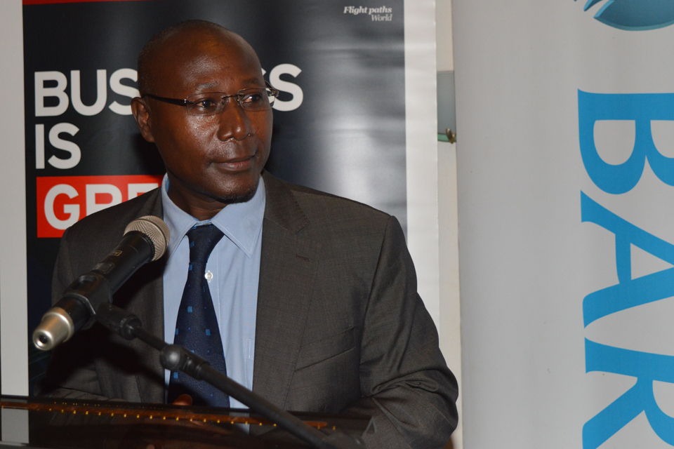 Barclays Bank Uganda Managing Director Rakesh Jha speaks to some of the Barclays Business Club members during the reception.