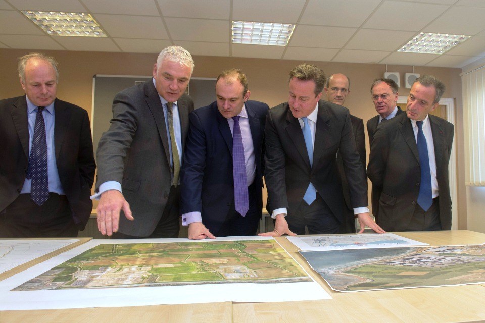 The Prime Minister and Edward Davey, Secretary of State for Energy, view plans for the new nuclear site at Hinkley, Somerset.