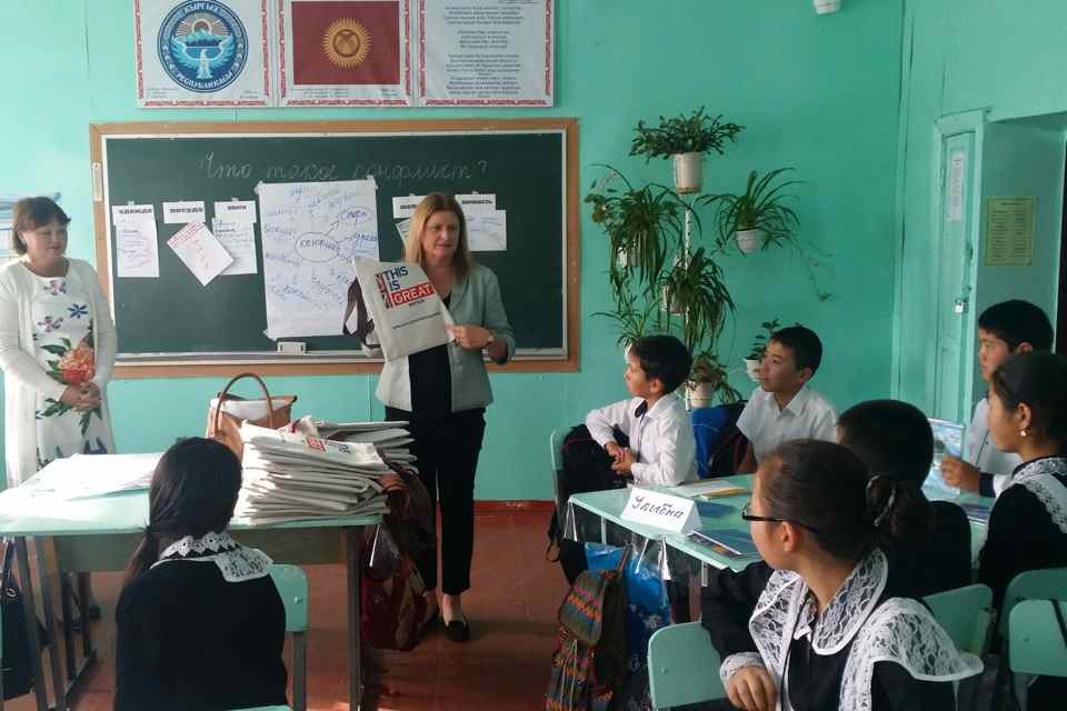 The Ambassador also visited Secondary School No. 5 to observe a “tolerance class” to teach young students about how to avoid conflict. This project, implemented by the Institute for Public Policy, is also funded by the UK Conflict Pool. So far the project has been working with 52 pilot schools all over Kyrgyzstan to introduce a peace education programme.