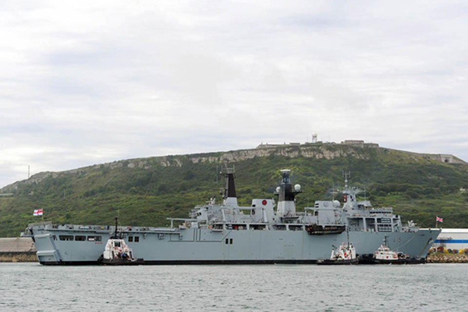 The flagship has relieved Royal Fleet Auxiliary vessel Mounts Bay which has spent the past month providing office administrative support and accommodation facilities for small boat crews, docking and maintenance facilities for raiding craft, planning rooms for Navy logistics staff, and offices and briefing rooms for police and 43 Commando Fleet Protection Group Royal Marines.