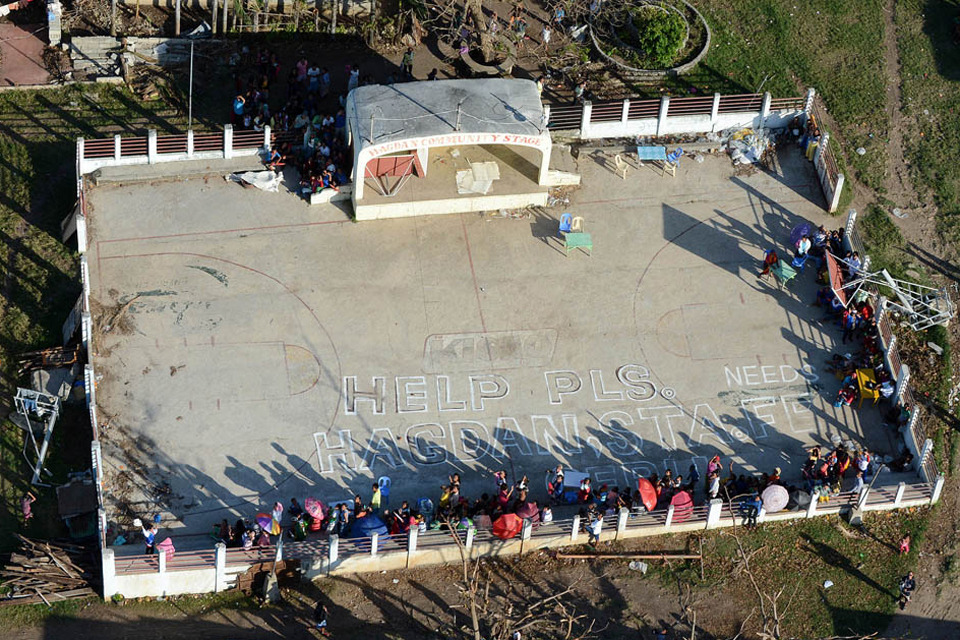 The message asking for help on the Hagdan school playground [Picture: Leading Airman (Photographer) Keith Morgan, Crown copyright]