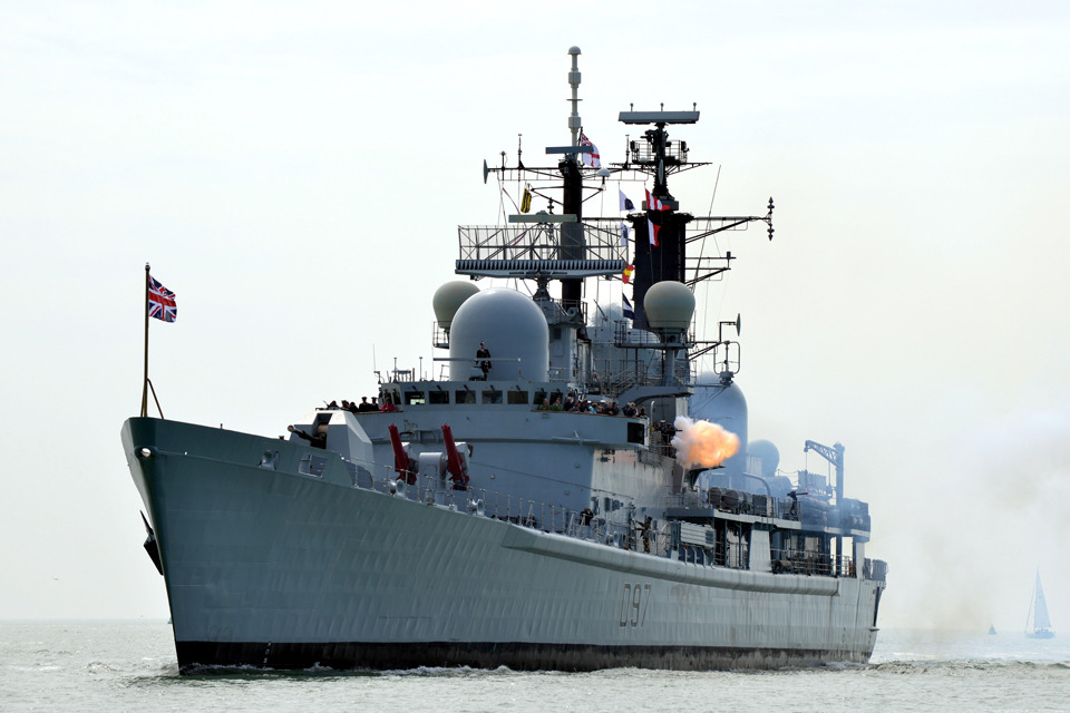 A 21-gun salute is fired from HMS Edinburgh [Picture: Leading Airman (Photographer) Gary Weatherston, Crown copyright]