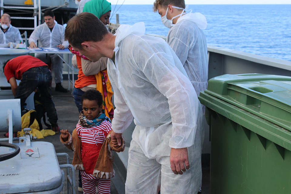 The migrants were cared for by the military personnel on board the ships and have been transferred to the Norwegian support ship, Siem Pilote, to take them ashore and enable both HMS Enterprise and HMS Richmond to return to their original taskings.