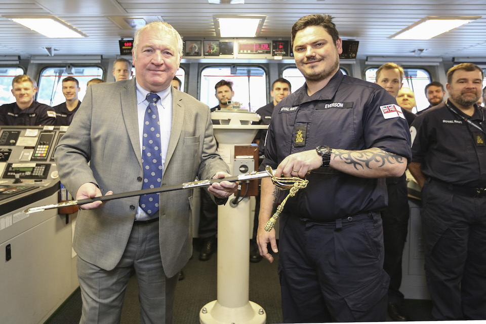 During his visit to Gibraltar, Mr Penning was given a tour of Enterprise by Cdr Harper, and presented a number of other medals and awards to individual members of the ship’s company.
