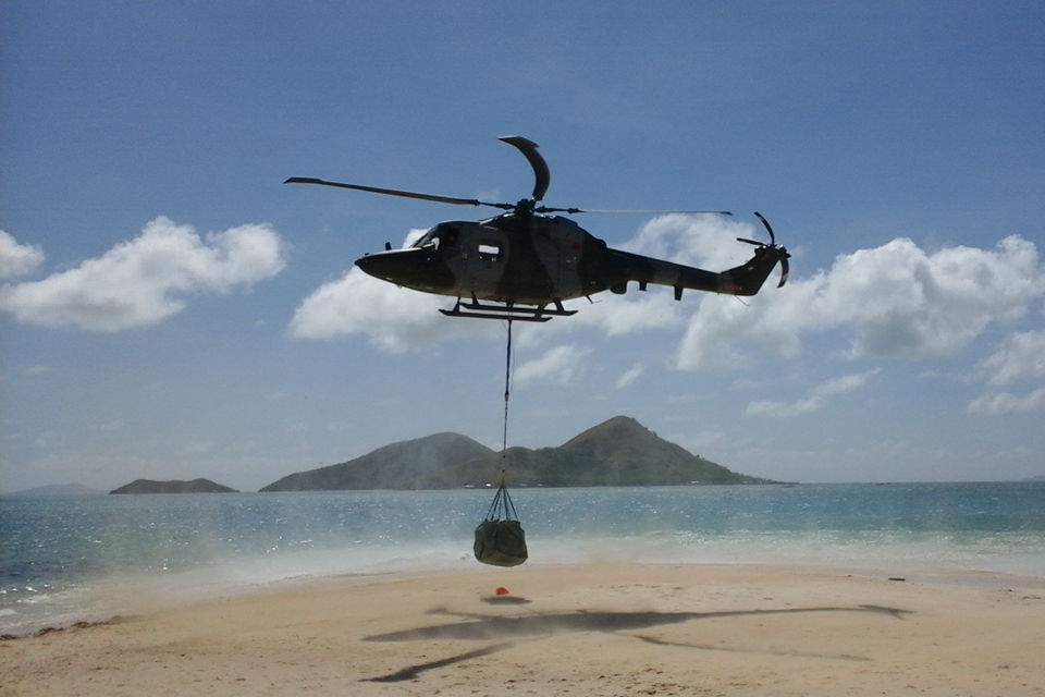 A British Army Lynx helicopter delivers humanitarian supplies ashore from HMS Illustrious [Picture: Crown copyright]