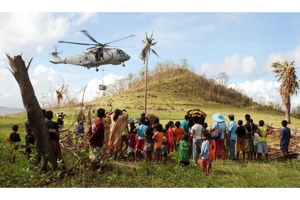 A Merlin helicopter from 829 Naval Air Squadron delivers aid to communities on Sicogon Island in the Philippines [Picture: Leading Airman (Photographer) Nicky Wilson, Crown copyright]