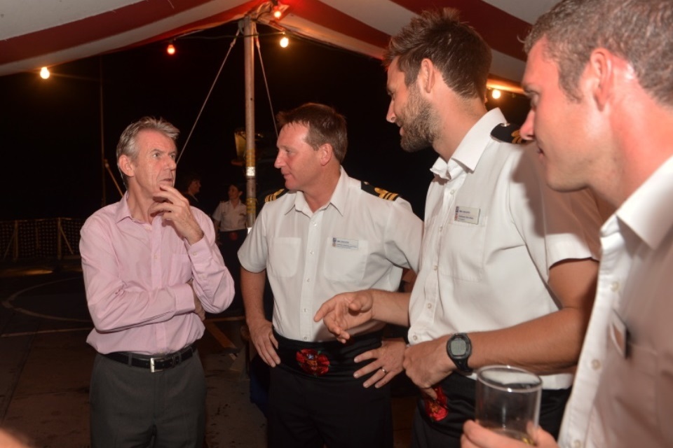 Peter Hughes chats with officers on board HMS Lancaster during the evening reception and capability demonstration.