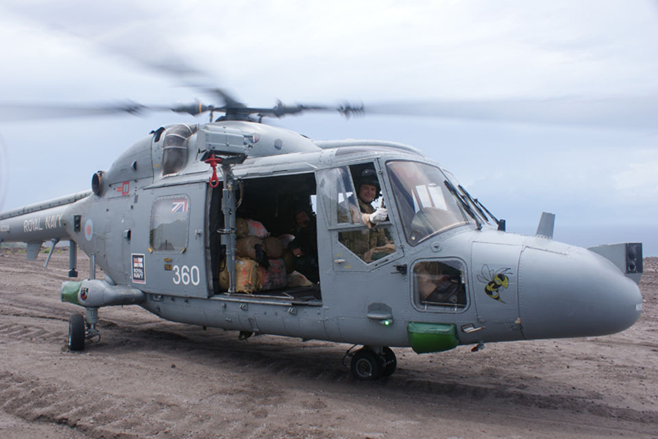Lieutenant Luke Edwards lands HMS Manchester's Lynx helicopter on Montserrat with the bales of cannabis in the back [Picture: Crown Copyright/MOD 2010]