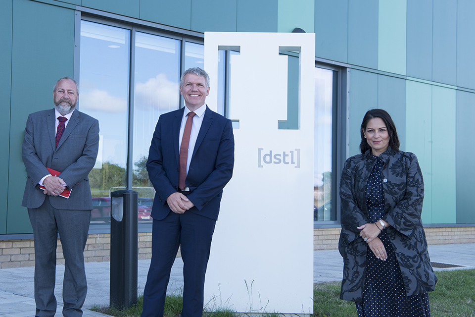 Dstl's Mike Smith CTS Lead, Dstl's Chief Executive Gary Aitkenhead and Home Secretary Priti Patel