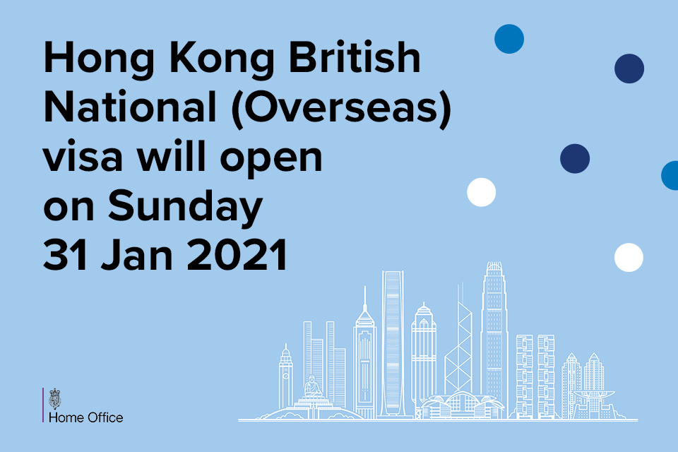 The UK government will deliver on its commitment to open a new visa for Hong Kong BN(O) status holders on Sunday 31 January.