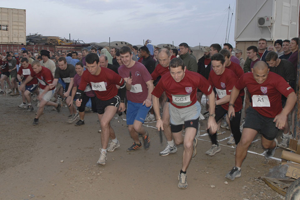 The start of the half-marathon relay race at Headquarters Task Force Helmand in Lashkar Gah [Picture: Corporal George ABIPP RAF, Crown Copyright/MOD 2011]