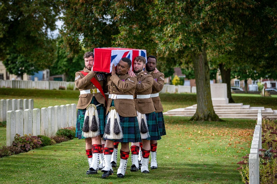 Today, one unknown soldier of The Black Watch (Royal Highlanders) and a second unknown Scottish soldier were laid to rest by serving soldiers of the Royal Regiment of Scotland.
