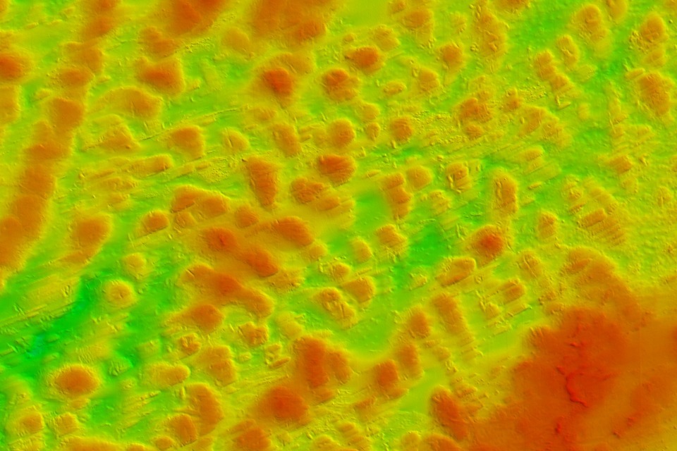 Extensive drumlin field in the centre of the Irish Sea. Large erratic boulders and eroded bedrock ridges are also visible in the data. The former direction of ice flow was from northeast to southwest. Image credit: UKHO (2022).