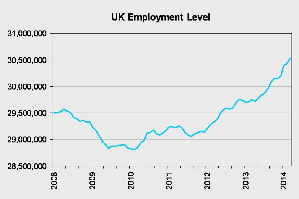 - 30.54 million people were in work in February to April 2014
