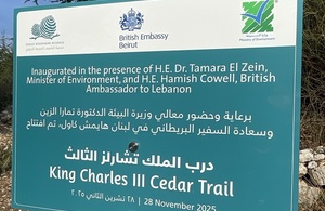 “يمثل درب أرز الملك تشارلز الثالث رمزاً قوياً للصداقة الدائمة بين المملكة المتحدة ولبنان. ويعكس التزامنا المشترك بالعمل المناخي والتنوع البيولوجي والحفاظ على التراث الطبيعي المميز للبنان. ومع تطلعنا إلى المستقبل، يبقى هذا المسار شاهداً حياً على شراكتنا وجهودنا المشتركة لبناء مستقبل أكثر خضرة وصلابة.”