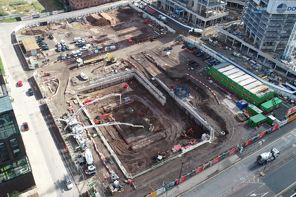 The building works at our Manchester Hub in First Street rapidly progressed in April as we completed the first concrete pour to form the core base of the build.