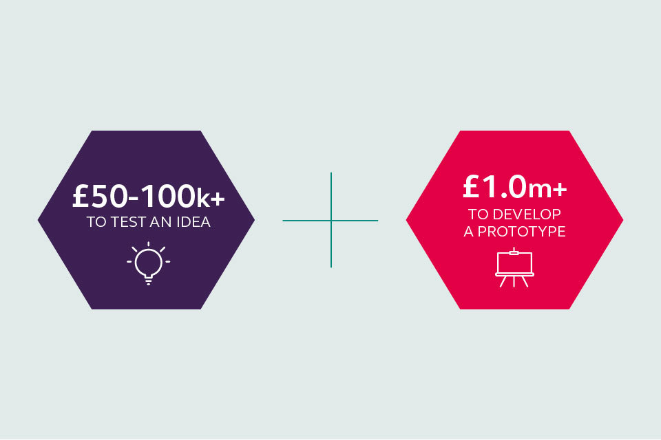 Businesses can get up to £100,000 or more to test and idea and up to £1 million or more to develop a prototype.