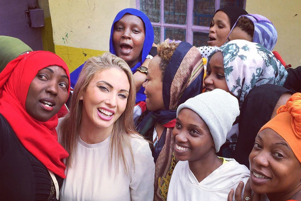 Sophie Lott with girls in Kenya