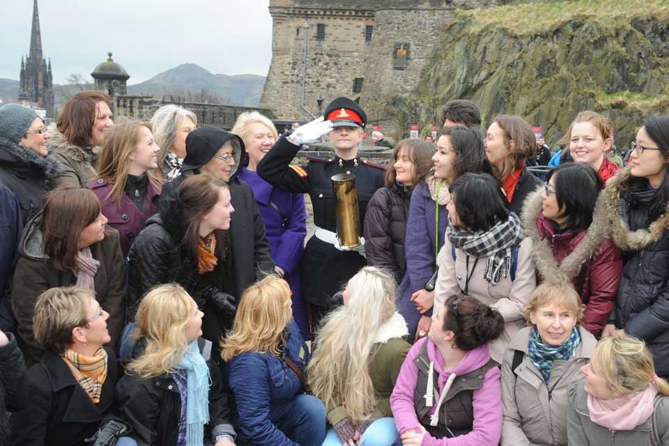 Bombardier Allison Jones is pictured with women visitors from all over the world, including the United States, Russia, Germany, Taiwan, Hong Kong, Singapore, England, Wales, Northern Ireland, and of course Scotland [Picture: Mark Owens, Crown copyright]
