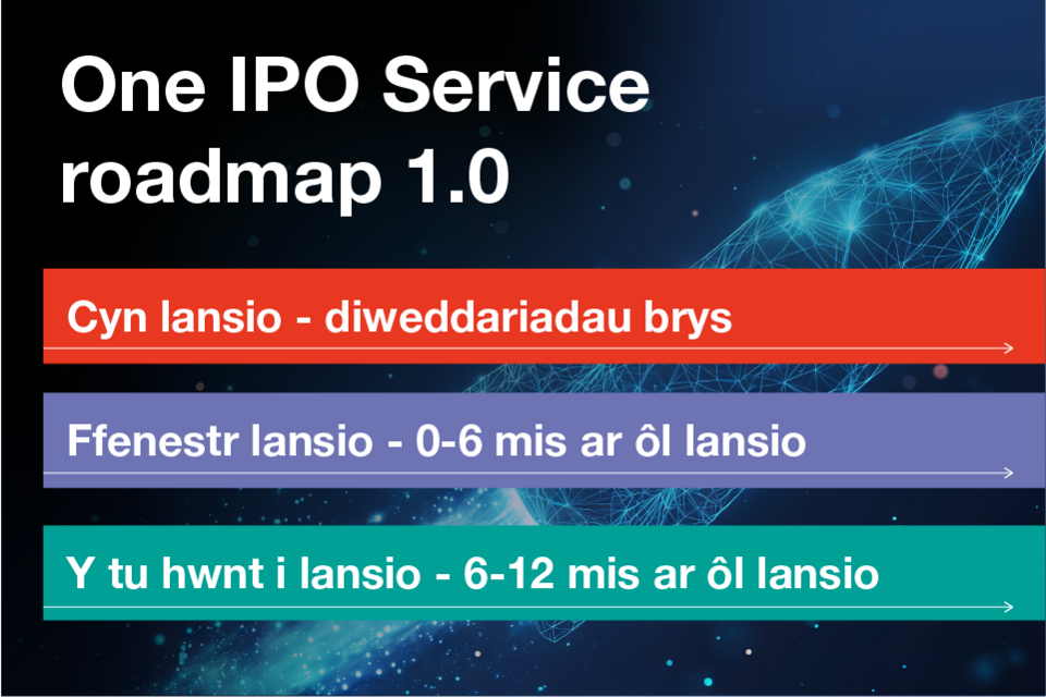 Wrth i ni baratoi i lansio gwasanaeth patentau Un IPO, rydym yn rhannu ein cynllun ffordd o newidiadau, gwelliannau ac ychwanegiadau dros y misoedd nesaf.