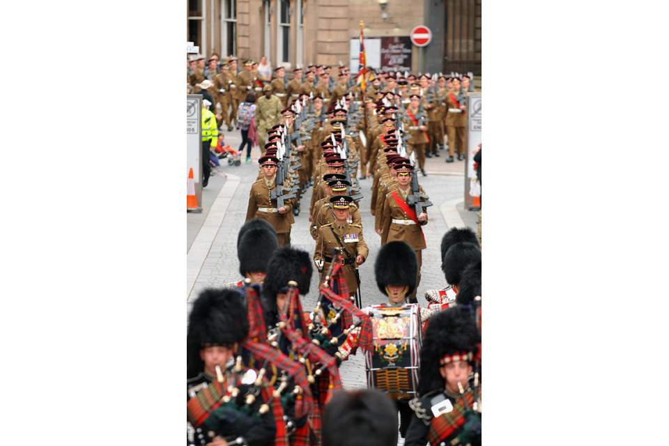 Soldiers of the 1st Battalion Scots Guards march through Inverness [Picture: Mark Owens, Crown copyright]