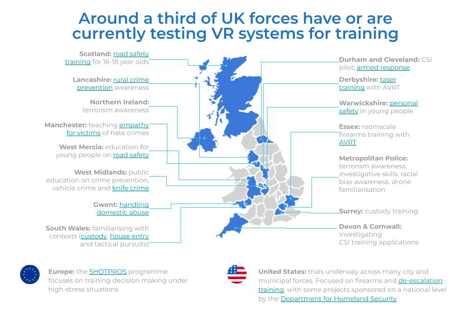 Map of police forces using VR in the UK