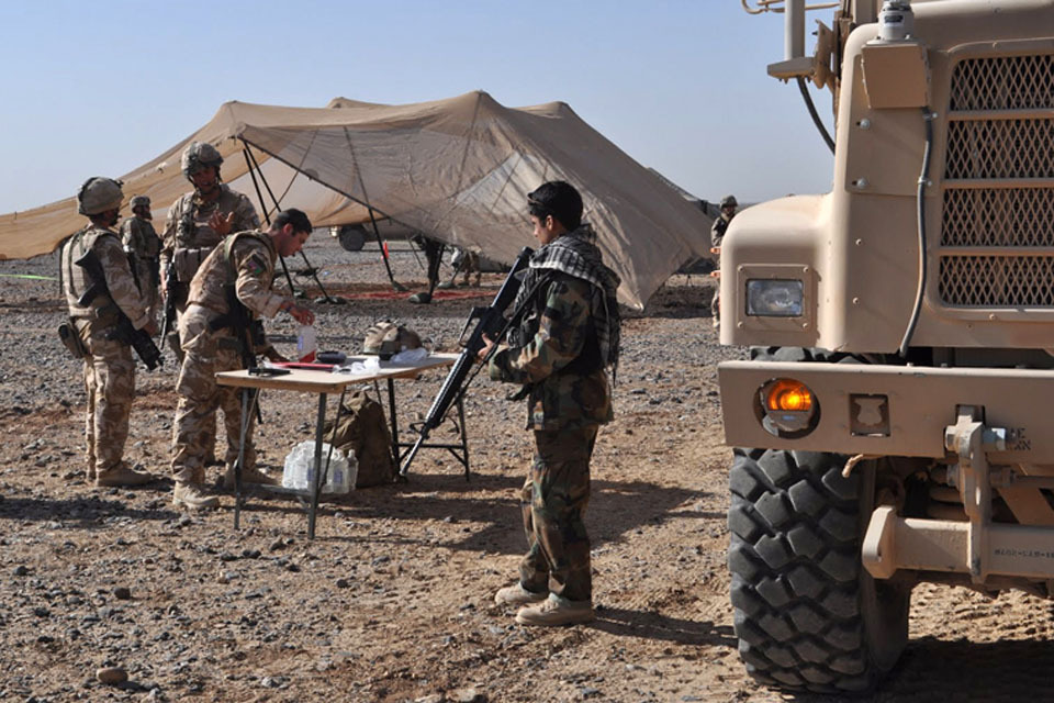 Afghan National Army soldiers and gunners from No 1 Squadron RAF Regiment set up a reception area for a primary health care clinic at the village of Habibabad [Picture: Wing Commander Steve Dargan, Crown Copyright/MOD 2010]