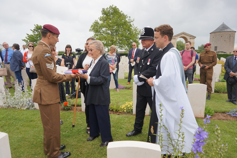 Private Tingle’s sister, Margaret Keighley receives the Union Flag from Sergeant Gordon Judge, Crown Copyright, All rights reserved