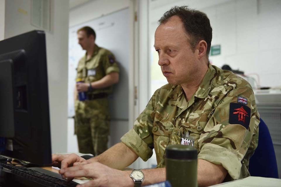 Colonel Kenyon working during the exercise. Crown Copyright. Photo: Lee Goddard. All rights reserved.