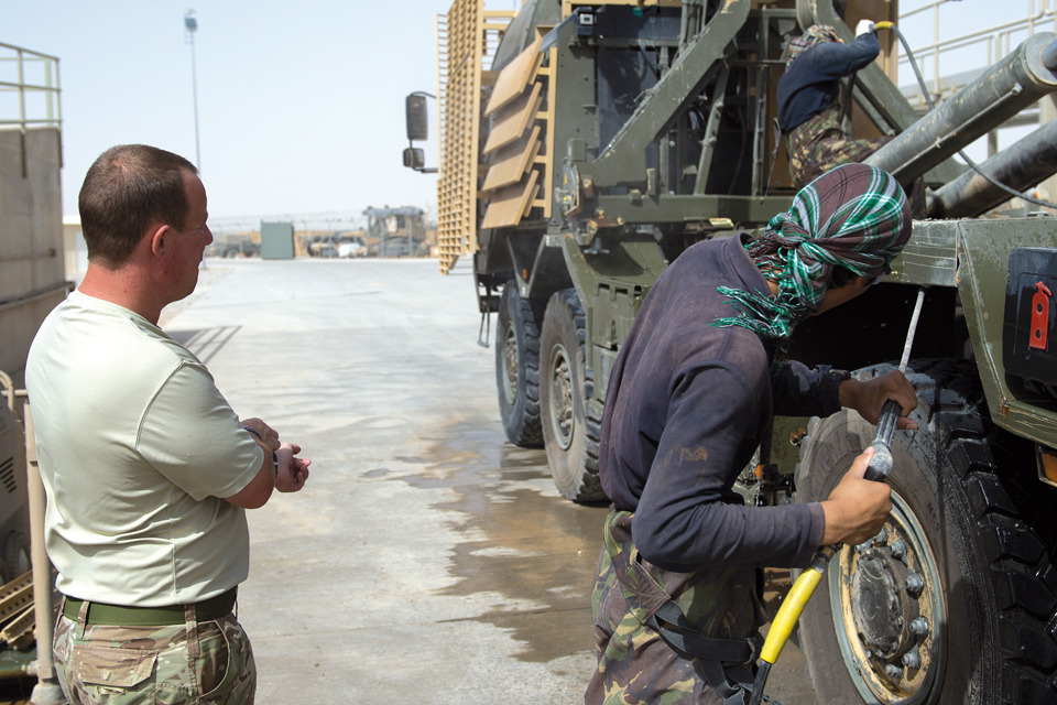 Over at the light engineering workshops of the Theatre Equipment Support Group, the same smooth thinking is being applied to the vehicles leaving theatre. This is the Bastion-based hub of the engineering expertise for servicing and upgrading vehicles in theatre.