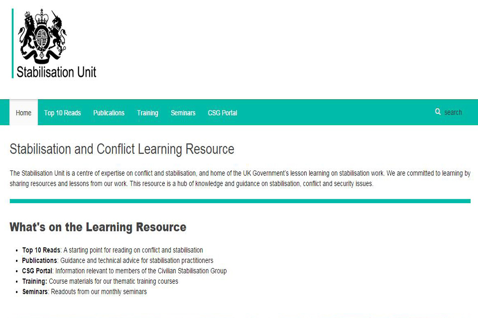 This week the Stabilisation Unit has re-launched the Stabilisation and Conflict Learning Resource, which is an online hub for knowledge and guidance on conflict, stabilisation, security and justice. As the cross-government focal point for conflict and stabilisation lessons, the Stabilisation Unit has designed this website as resource for sharing learning in a simple, accessible way.