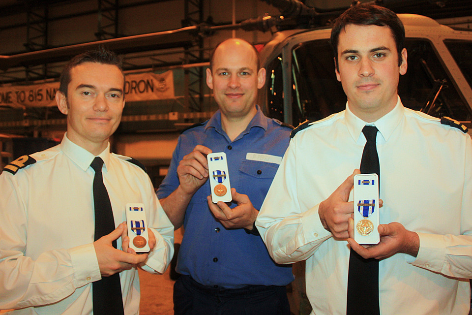 The four who received medals for the operation were Lieutenant Alistair Crawford, Lieutenant Craig Farquharson, Petty Officer Paul Perry and Air Engineering Technician Matthew Parker.