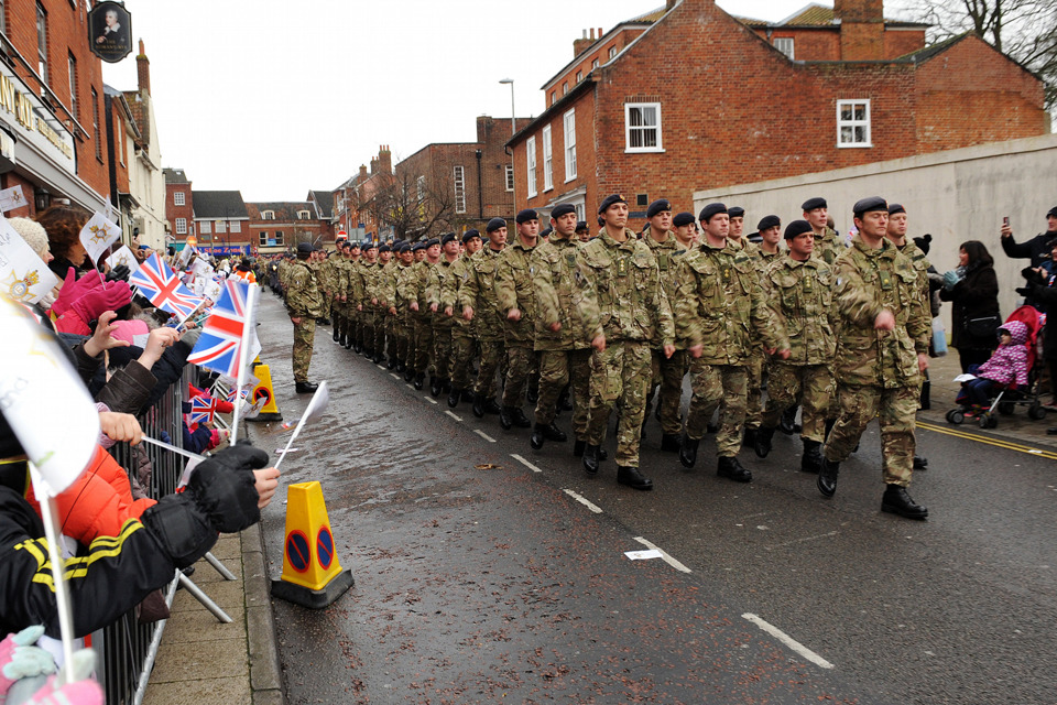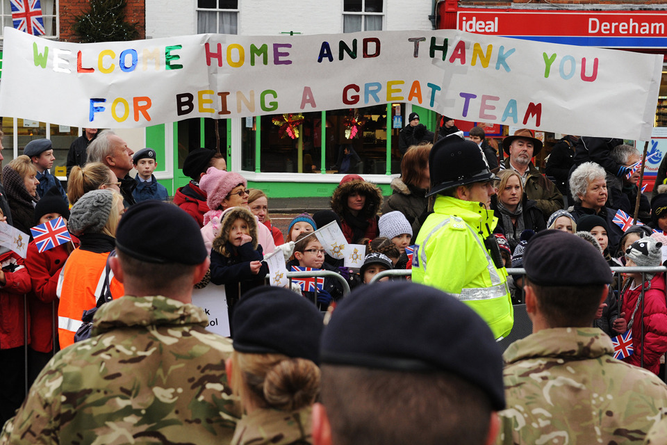 The streets of Dereham came to a standstill on Wednesday 5 December as residents and businesses welcomed members of The Light Dragoons home from Afghanistan [Picture: Corporal Obi Igbo, Crown Copyright/MOD 2012]