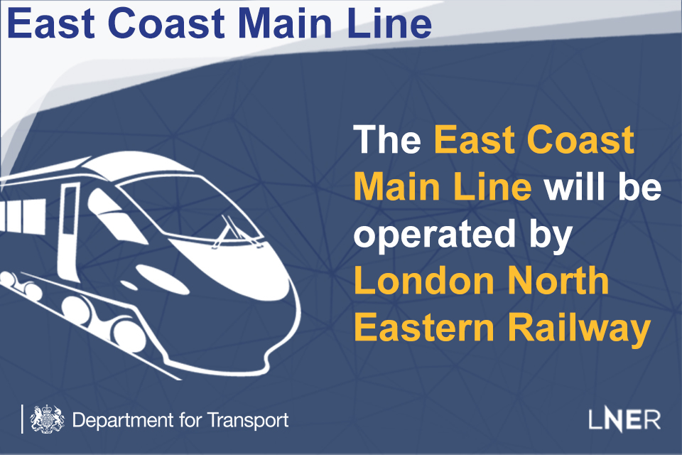 The East Coast Main Line will be operated by London North Eastern Railway.
