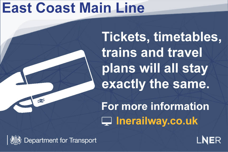 Following the change of operator, trains on the East Coast Mainline will operate as LNER, rather than Virgin Trains East Coast.