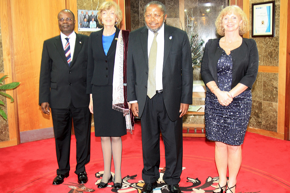 Lord Mayor of the City of London, Rt Hon Fiona Woolf (2nd left) and British High Commissioner HE Alison Blackburne (right) with Governor of the Bank of Uganda, Prof Emmanuel Tumusiime-Mutebile (2nd right) and Deputy Governor Louis Kasekende (left).