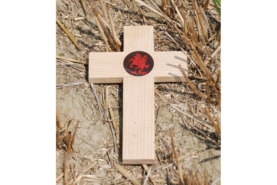 A simple wooden cross laid at the crash site of Boston BZ590 by Wing Commander Lee Turner, Officer Commanding 18 Squadron [Picture: Mike Drewett, Crown copyright]