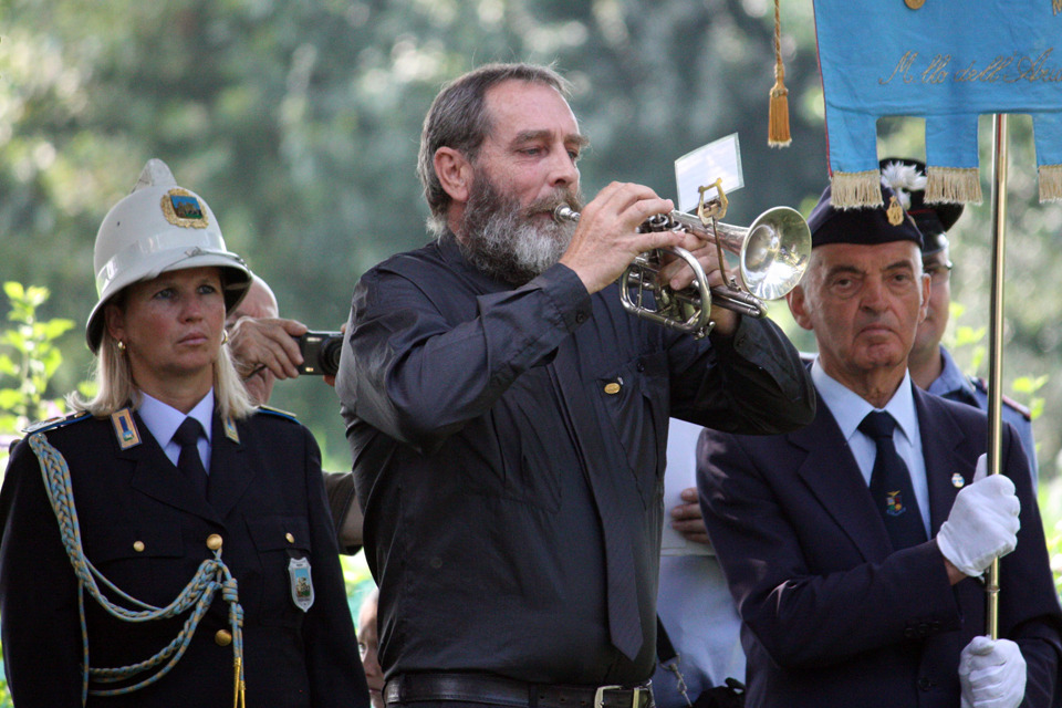 A lone piper plays a lament at the crash site of Boston BZ590 in northern Italy [Picture: Mike Drewett, Crown copyright]