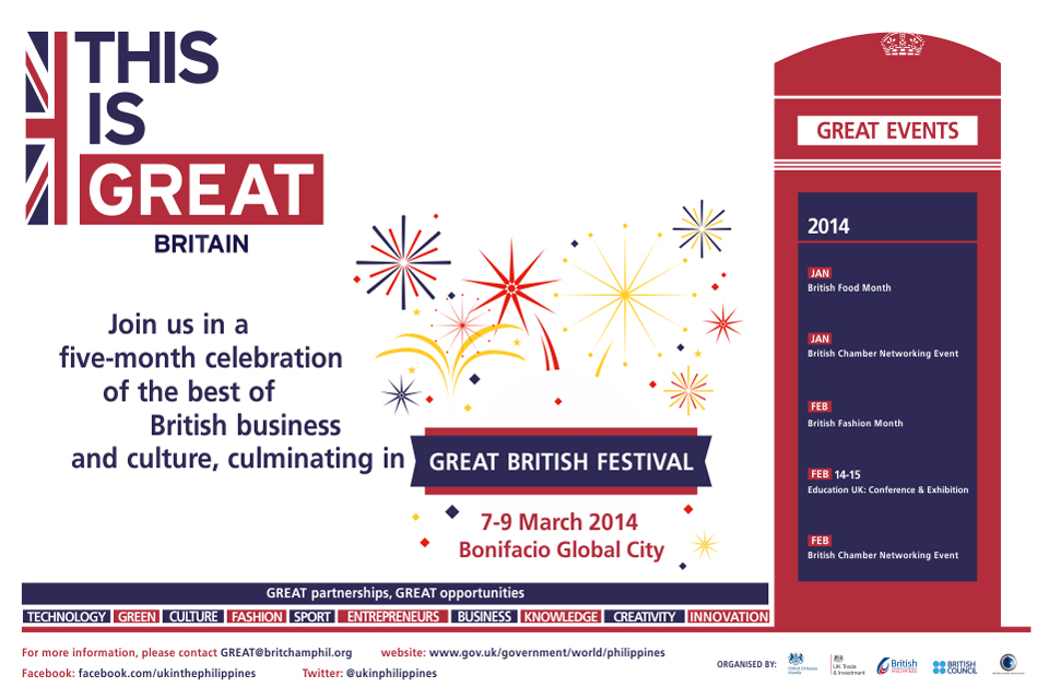 The five-month ‘THIS IS GREAT Britain’ campaign that featured a full spectrum of the best in British business and culture reached its climax in the Great British Festival which happened at the Bonifacio High Street on March 7 - 9, 2014.