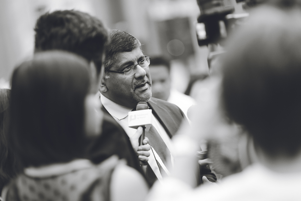 British Ambassador Asif Ahmad being interviewed by reporters at the opening of the Great British Festival.