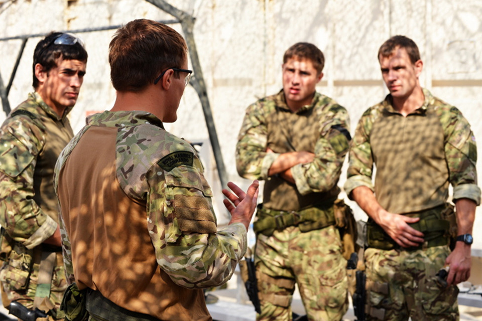Captain Will Hall RM debriefs members of the team before the firing exercise [Picture: Crown Copyright/MOD 2013]